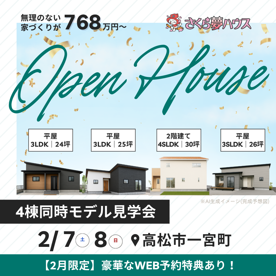 高松市一宮町 4棟同時モデルハウス見学会開催